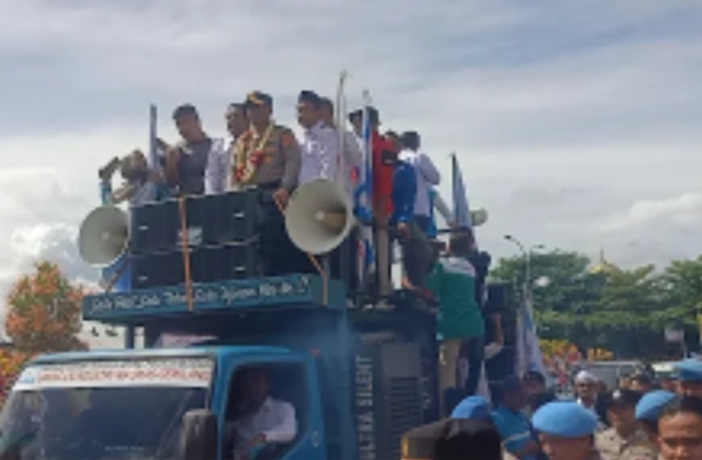 Kendaraan tersebut secara khusus disiapkan oleh elemen buruh sebagai simbol penghormatan.