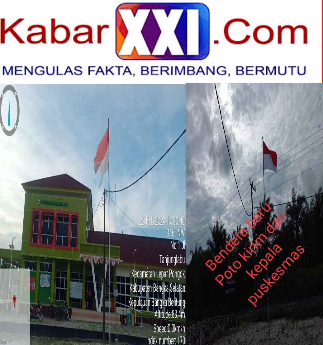 Babel, kabarxxi.com – Pada tanggal 20 Februari 2024, Bendera Merah Putih ditemukan berkibar dalam keadaan robek di halaman Puskesmas Tanjung Labu, kecamatan Lepar Pongok, kabupaten Bangka Selatan, provinsi Bangka Belitung. Temuan ini menimbulkan dugaan pembiaran terhadap UU No 24 tahun 2009 tentang bendera.