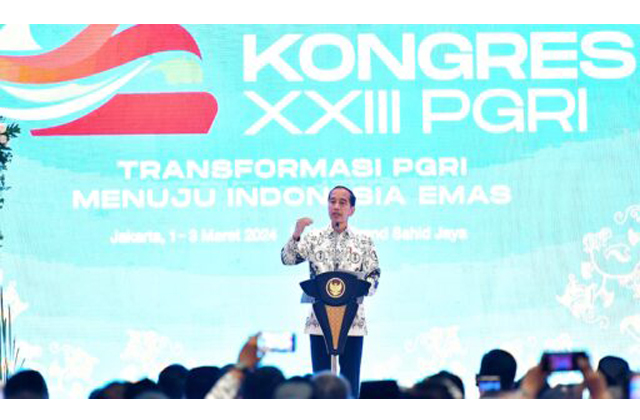 JAKARTA, KabarXXI.Com – Presiden Joko Widodo (Jokowi) secara resmi membuka Kongres XXIII Persatuan Guru Republik Indonesia (PGRI) di Hotel Grand Sahid Jaya, Jakarta, Sabtu, 2 Maret 2024.