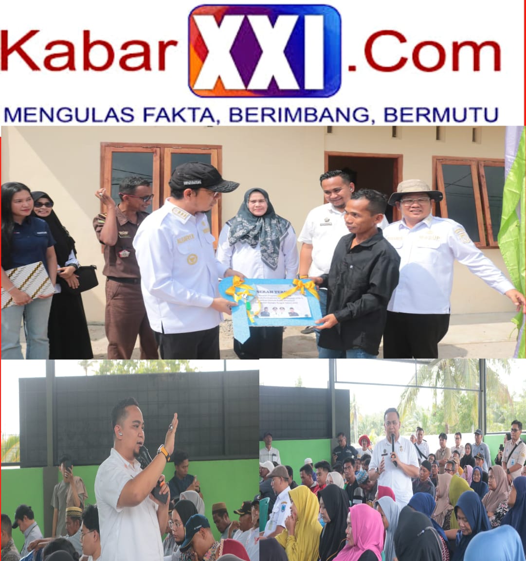 Babel, kabarxxi.com – Bupati Bangka Tengah, Algafry Rahman bersama Wakil Bupati Bangka Tengah, Efrianda, Kepala Diperkimhub Bangka Tengah, Fani Hendra Saputra, Perwakilan PT Timah, Perwakilan Bank Sumsel Babel cabang Koba, perwakilan PLN, perwakilan dari Mowilex, serta jajaran Pemkab Bangka Tengah, meresmikan sekaligus pemotongan pita, rumah relokasi program Dak Tematik Pengentasan Permukiman Kumuh Terpadu (PPKT) di Desa Kurau, Kabupaten Bangka Tengah. Rabu 26 Maret 2025.