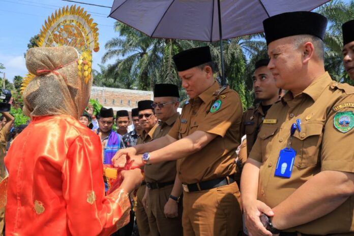 Pasaman, Kabarxxi.com – Walaupun dibawah terik panas matahari, kehadiran Bupati Pasaman Sabar AS dan rombongan disambut meriah ratusan masyarakat dengan silat dan tari pasambahan, ditambah nyanyian rebana group kasidah setempat, di Pasar Jorong Kubu Nagari Binjai, Kecamatan Tigo Nagari, Selasa (02/07/2024).