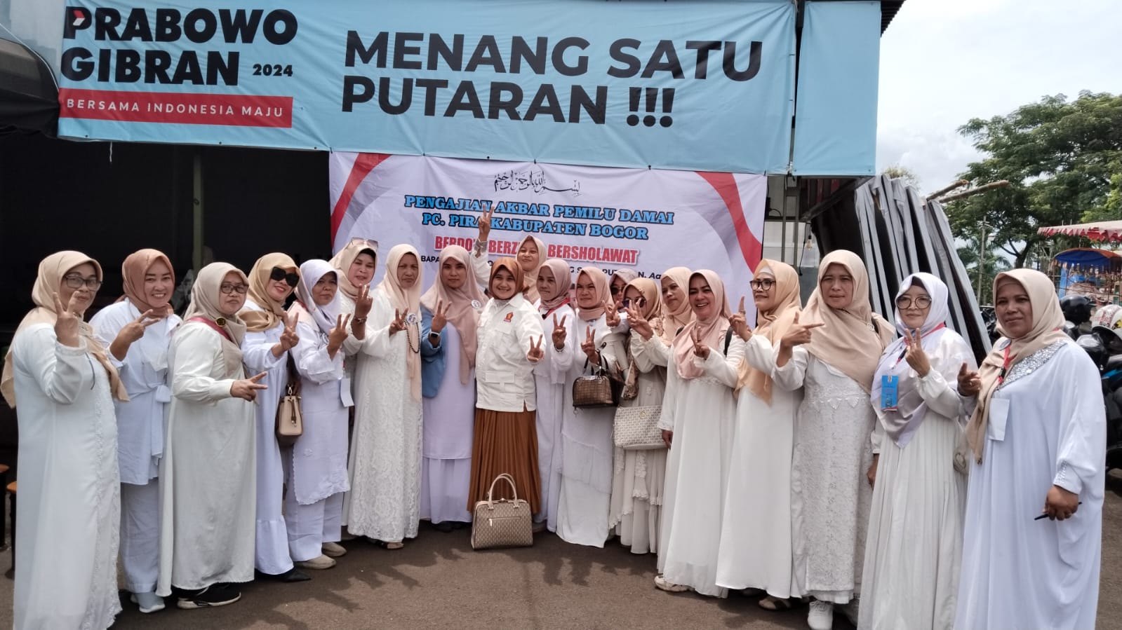 Bogor, Kabarxxi.com – Pengajian Akbar Pemilu Damai Pengurus Cabang Perempuan Indonesia Raya ( PIRA) Kabupaten Bogor menggelar acara dengan teman”Berdoa, Berzikir, Bersholawat” Untuk Bapak Prabowo – Gibran menang satu putaran. Bertempat di Posko Pemenangan Prabowo-Gibran Pakansari kabupaten Bogor Jawa Barat Jum’at,26/01/2024.