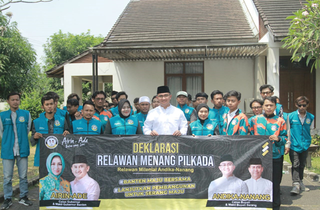 SERANG, KabarXXI.Com – Relawan Milenial Andika – Nanang atau Relawan Menang mendeklarasikan diri mendukung pasangan Andika Hazrumy – Nanang Supriatna pada Pilkada Kabupaten Serang 2024.
