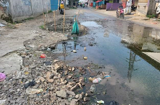 Karyawan PT PWI 2 dan warga, khususnya pengguna jalan kendaraan roda dua dan empat, mengeluh soal jalan rusak yang tak kunjung diperbaiki.