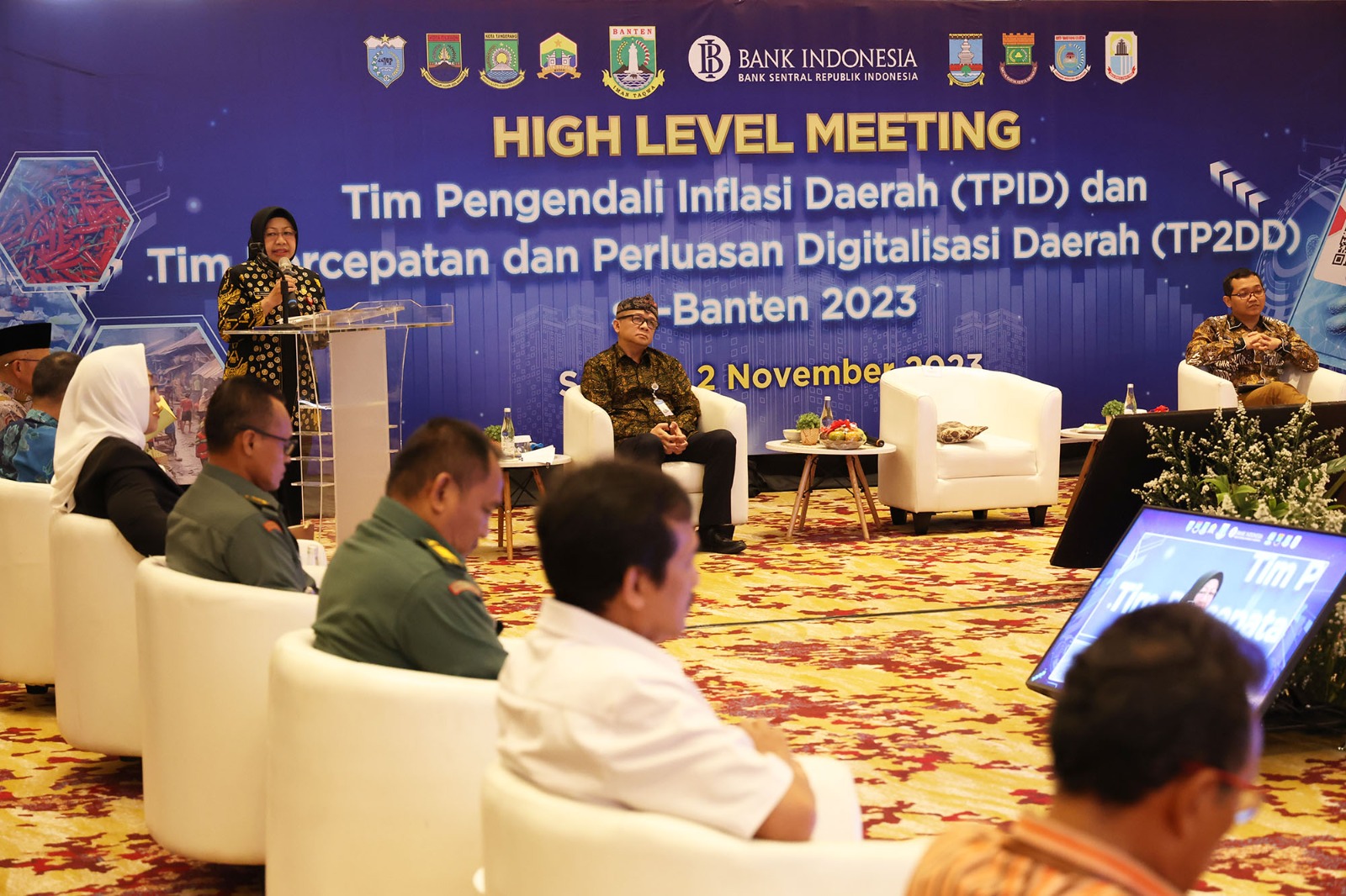 Hal itu diungkapkan Al Muktabar saat membuka High Level Meeting Tim Pengendali Inflasi Daerah (TPID) dan Tim Percepatan dan Perluasan Digitalisasi Daerah (TP2DD) secara virtual di Aston Hotel, Kota Serang, Kamis, 02 November 2023.