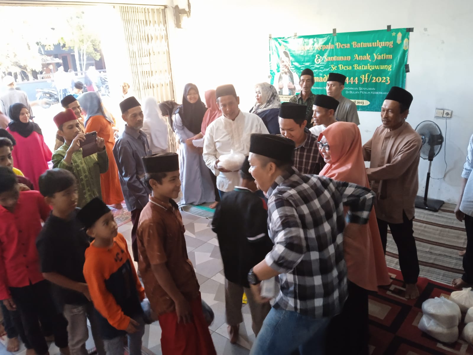 Kepala Desa Batukuwung, Aeng Haerudin mengatakan, acara santunan yatim piatu dan kaum dhuafa yang ia bagikan merupakan bentuk kepedulian dirinya kepada anak-anak yatim di desanya.