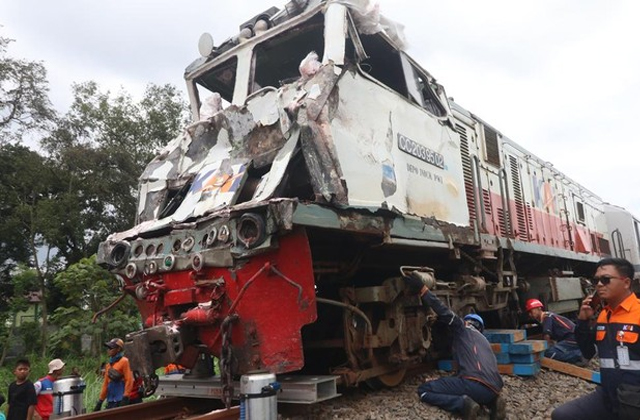 Kerasnya benturan yang terjadi hingga membuat lokomotif mengalami kerusakan cukup parah.