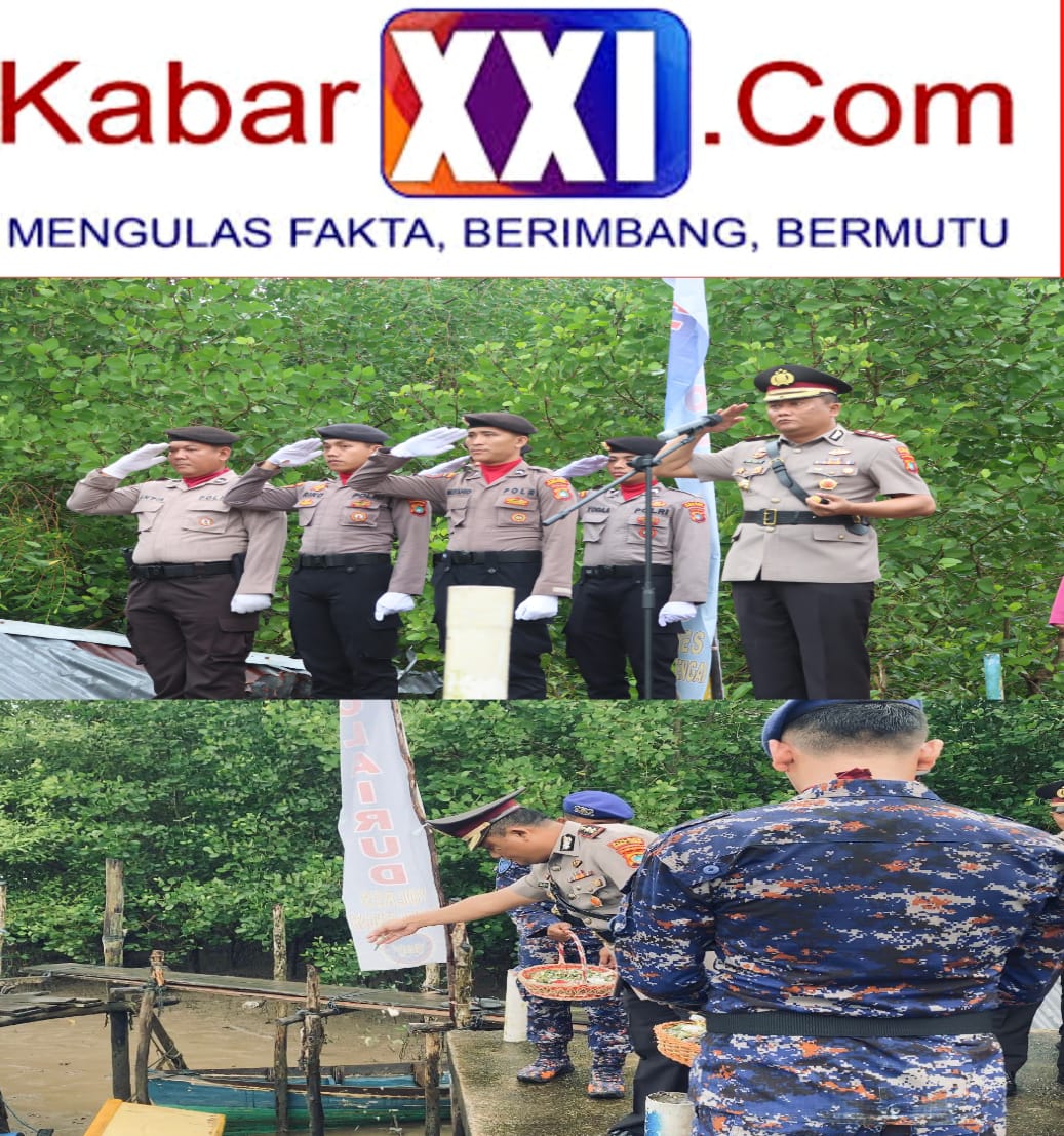 Kapolres Bangka Tengah mengambil peran penting sebagai Inspektur Upacara (Irup) dalam upacara tabur bunga yang diselenggarakan di Dermaga desa Kurau ,sebuah simbol penghormatan terhadap jasa pahlawan kepolisian.