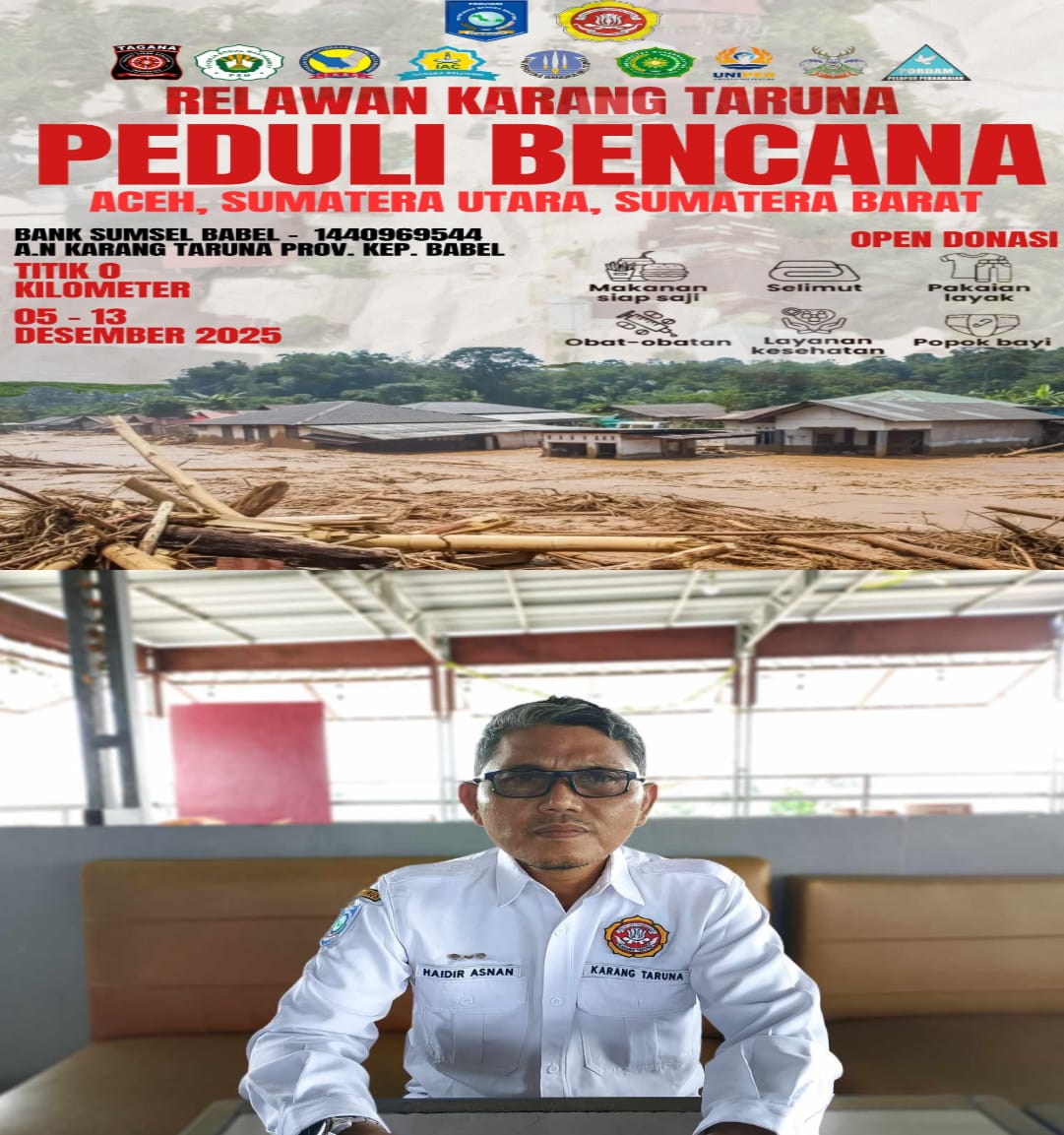 “Musibah ini duka kita bersama. Saya mengajak masyarakat Bangka Belitung untuk ikut peduli dan menyalurkan apa pun yang bisa meringankan beban saudara-saudara kita di Sumatera, “ujarnya.
