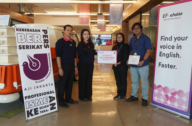 “Kolaborasi EF EFEKTA dengan AJI Jakarta melalui program beasiswa ini adalah wujud komitmen kami dalam mendukung pengembangan profesionalisme jurnalis Indonesia. Kami berharap program ini dapat menjadi katalis yang mendorong para jurnalis untuk lebih percaya diri dalam berkomunikasi maupun menulis dalam bahasa Inggris,” ujar Stefany Yacop, Marketing Director EF EFEKTA English for Adults Indonesia.