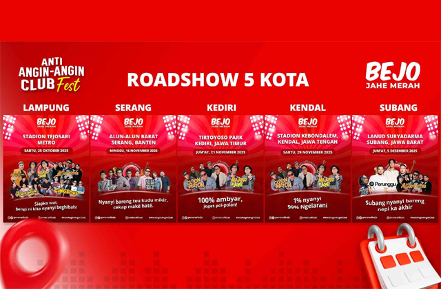 “Anti Angin Angin Club Fest ini jadi konser roadshow yang diadakan langsung oleh Bejo Jahe Merah untuk para member Anti Angin Angin Club Indonesia. Jangan lewatkan kesempatan untuk ikut merasakan kehangatan jahe merah dan bergabung dalam keseruannya. Bersama Bejo Jahe Merah, semua bisa melawan angin dengan hangat, semangat, dan tawa!” pungkas Arwin Nugraha Hutasoit. (*/red)