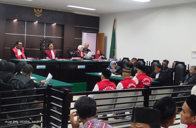 SERANG, KabarXXI.Com – Nanang Nasrulloh selaku Direktur Utama PT Pancatama Putra Mandiri, dan kawan-kawan menjalani sidang perdana terkait kasus pungutan liar (pungli), di Ruang Sidang Sari Pengadilan Negeri (PN) Serang, Kamis, 28 Agustus 2025.