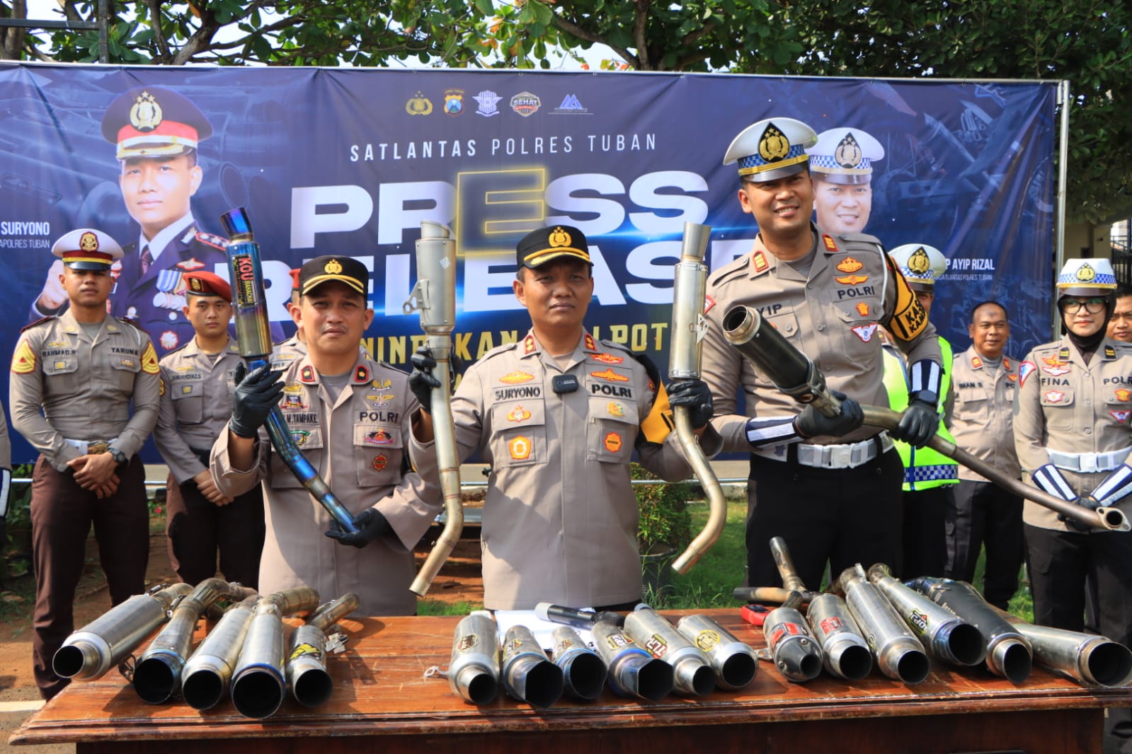 Dalam konferensi pers tersebut, Suryono menjelaskan, terdapat 165 kendaraan roda dua dengan berbagai jenis yang diamankan oleh satuan lalu lintas Polres Tuban yang menggunakan knalpot tidak sesuai standar atau brong. Menurut aturan yang berlaku tingkat kebisingan kendaraan bermotor di bawah 175 CC tidak melebihi 80 desibel, sedangkan kendaraan di atas 175 CC kebisingan maksimal 83 desibel.