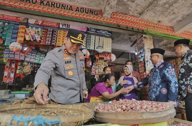 Kapolres dan Bupati turut berdialog langsung dengan pedagang untuk mengetahui harga jual dan stok barang di pasaran.