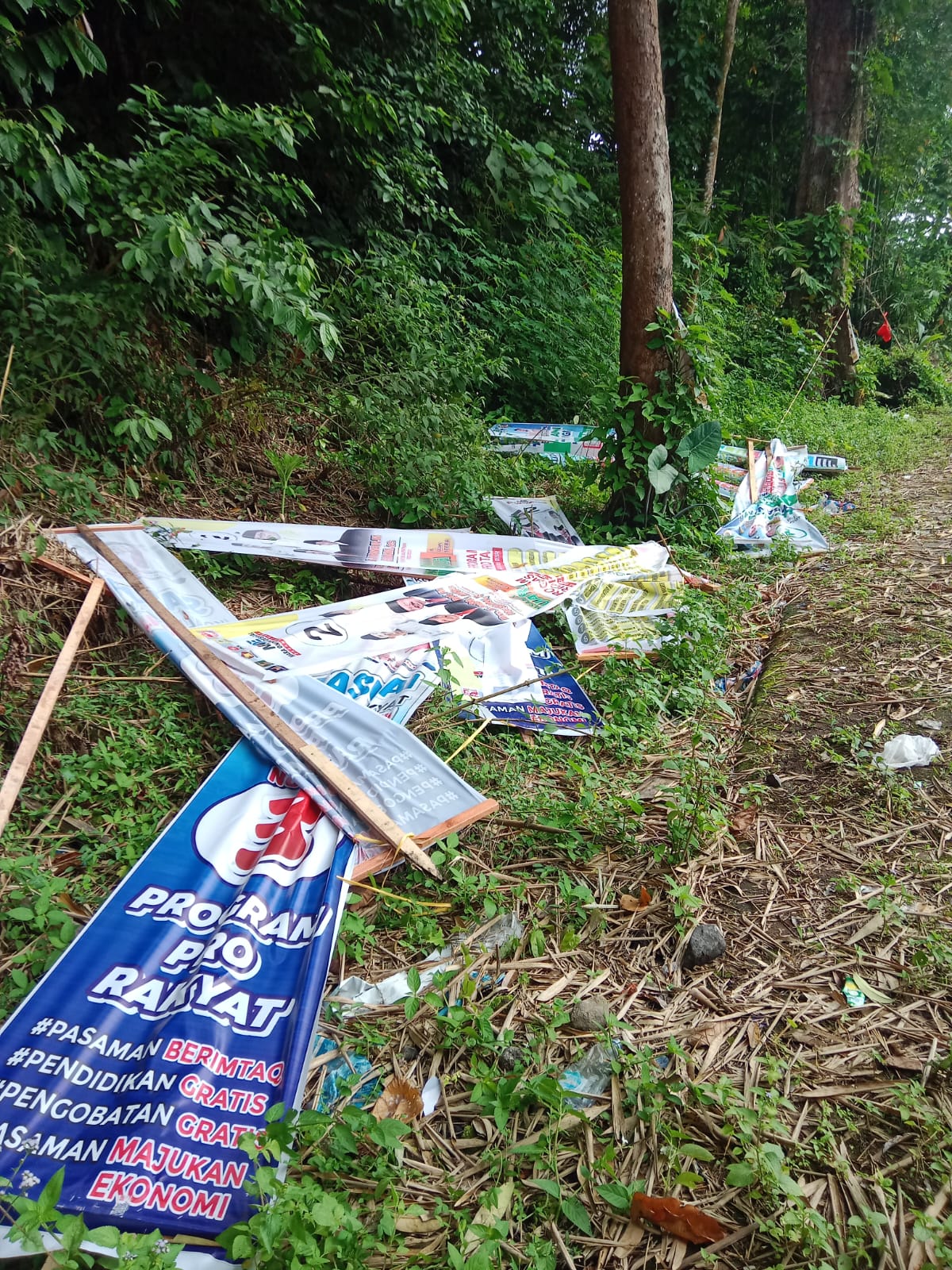 Di Kecamatan Bonjol, sejumlah baliho terlihat tumbang, diduga karena dipasang tanpa memperhatikan standar keamanan dan hanya diikat dengan tali seadanya.