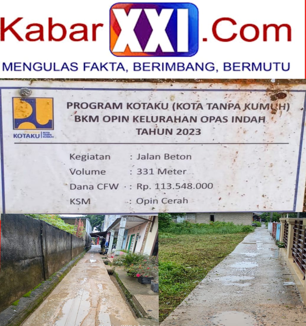 Dalam wacana tersebut, Di duga kuat terdapat kesalahan Tehnis dalam Pembangunan Jalan Setapak Di Program Kotaku (Kota Tanpa Kumuh) BKM OPIN Kelurahan Opas Indah, Kota Pangkalpinang, Provinsi Kep.Bangkabelitung,