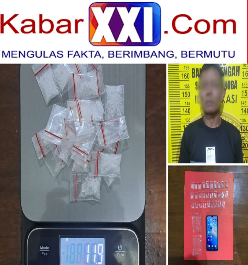 “Anggota Satresnarkoba Polres Bangka Tengah berhasil mengamankan seorang pria berinisial KC (42) beserta barang bukti narkotika diduga jenis sabu sebanyak 29 paket kecil yang disimpan dalam plastik bening dengan total berat bruto 11,9 gram, “ungkap Ipda Erwin.
