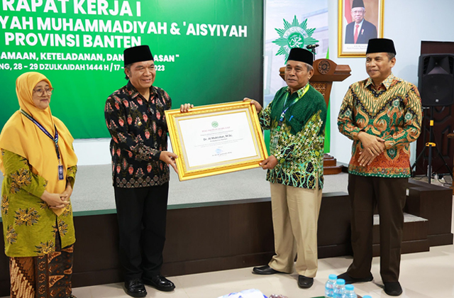 Penghargaan diserahkan Ketua PW Muhammadiyah, Syamsudin kepada Al Muktabar pada Pembukaan Rapat Kerja (Raker) Muhammadiyah I, PW Muhammadiyah dan Aisyiyah Provinsi Banten, di Gedung Dakwah PW Muhammadiyah Provinsi Banten, Jl. Ki Ajurum, Cipocok Jaya, Kota Serang, Sabtu, 17 Juni 2023.