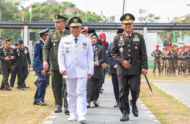 Bertindak sebagai Komandan Upacara Mayor Inf. A. H. Mulyana, Perwira Korem 64/Maulana Yusuf (MY).