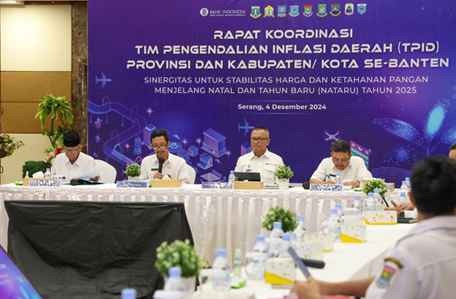 Demikian dikatakan Penjabat (Pj) Sekretaris Daerah (Sekda) Provinsi Banten Usman Asshiddiqi Qohara saat Rapat Koordinasi Tim Pengendalian Inflasi Daerah (TPID) Provinsi Banten dan Kabupaten/Kota di Kantor Perwakilan Bank Indonesia (BI) Provinsi Banten, Palima, Sindangsari, Kabupaten Serang, Rabu, 04 Desember 2024.