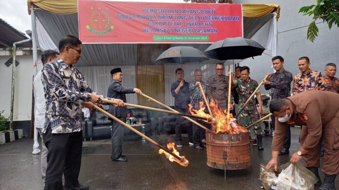 Kepada awak media, Kepala Kejaksaan Negeri Pasaman Sobeng Suradal mengatakan, barang bukti yang dimusnahkan merupakan barang bukti Perkara Tindak Pidana Umum yang telah memiliki kekuatan hukum tetap (Inkracht) tahun 2024 diantaranya.