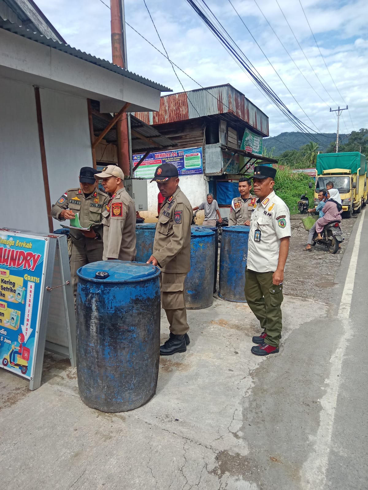 Pasaman, Kabarxxi.com – Satuan Polisi Pamong Praja (Pol PP) Kabupaten Pasaman bergerak cepat menanggapi laporan masyarakat mengenai pembangunan toko di atas trotoar di Simpang Tiga, Nagari Koto Kaciak, Kecamatan Bonjol. Kepala Operasi Pol PP, Zuipahmi, SH, bersama anggotanya turun langsung ke lokasi untuk melakukan penertiban pada Kamis (23/5/2024).