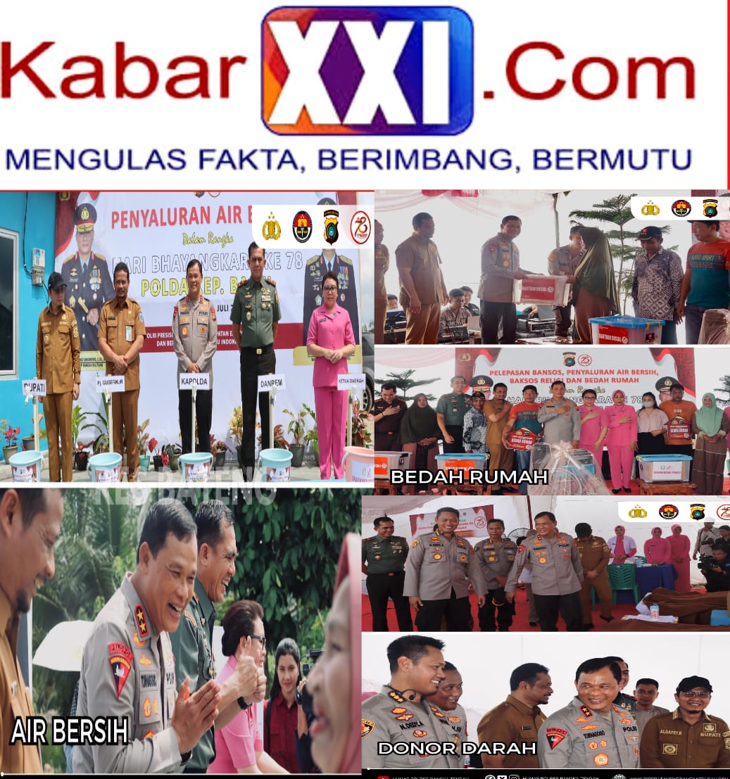 Babel, Kabarxxi.Com – Dalam rangka memperingati Hari Bhayangkara ke 78 tahun 2024 Polres Bangka Tengah melaksanakan pembagian bantuan sosial yang diantaranya program penyaluran air bersih, baksos religi, bansos presisi dan bedah rumah yang mana kegiatannya dihadiri langsung oleh Kapolda Kep. Babel IRJEN POL Dr. Tornagogo Sihombing, S.I.K., M.Si., CRGP bertempat di Desa Perlang Kecamatan Lubuk Besar, provinsi Bangka Belitung. Selasa 24 Juni 2024.