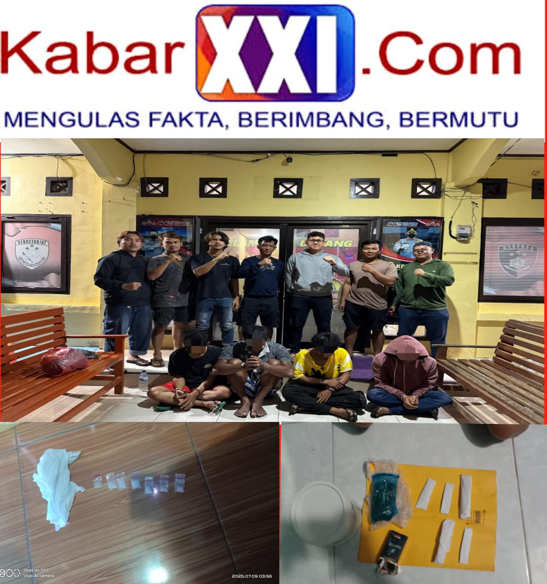 Dalam penggerebekan tersebut, empat orang berhasil diamankan bersama barang bukti berupa sabu-sabu dan ganja siap edar.