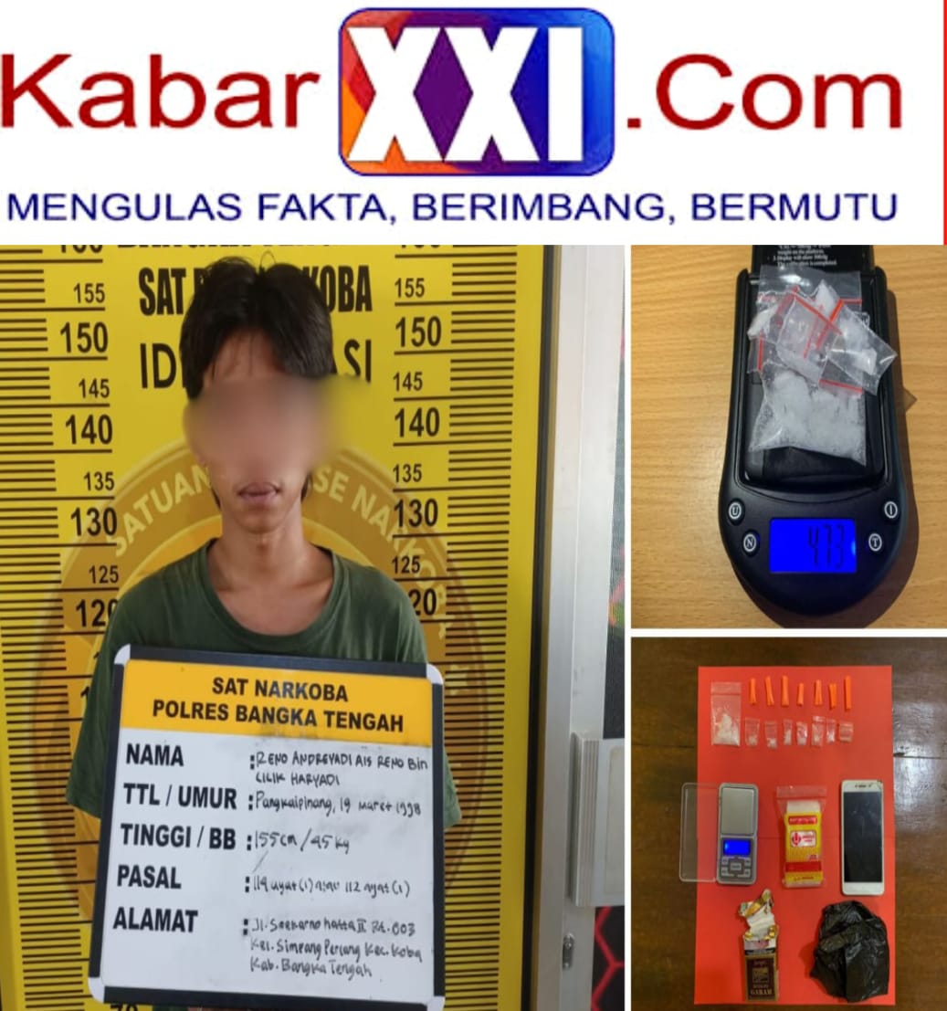 Koba, Kabarxxi.Com – Satuan Reserse Narkoba (Sat Resnarkoba) Polres Bangka Tengah kembali berhasil mengungkap kasus penyalahgunaan narkotika. Kali ini, seorang pelaku berhasil ditangkap dengan barang bukti sabu seberat 4,73 gram.