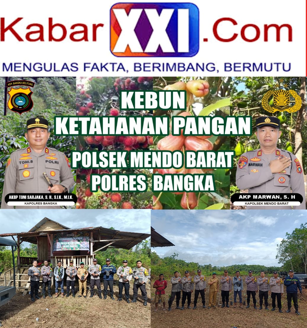 Babel, kabarxxi.com – Polsek Mendo Barat bersama Penyuluh Pertanian Lapangan (PPL) Kecamatan Mendo Barat melaksanakan kegiatan penanaman pohon buah unggul dan ubi Thailand di lahan seluas 1/4 hektar yang terletak di Kebun Polsek Mendo Barat, Selasa 7 Januari 2025.