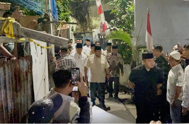 Diketahui, Prabowo tiba di rumah duka sekitar pukul 21.51 WIB. Prabowo didampingi Sekretaris Kabinet (Seskab) Teddy Indra Wijaya.
