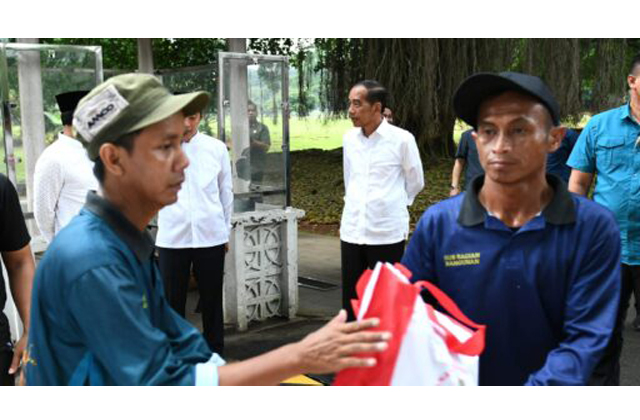 Presiden Jokowi Saksikan Penyerahan Sembako untuk Warga di Halaman Istana Bogor