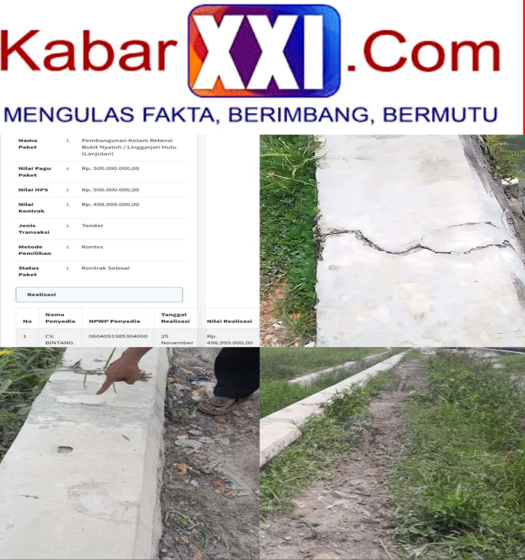 Pangkalpinang, kabarxxi.com — Proyek lanjutan pembangunan kolam retensi Bukit Nyatoh/Linggarjati Hulu di Kota Pangkalpinang tengah menjadi sorotan. Dikerjakan oleh CV Bintang Graha Lestari melalui Dinas Pekerjaan Umum dan Penataan Ruang (PUPR) setempat, proyek senilai hampir Rp500 juta ini menuai kritik lantaran diduga jauh dari standar teknis dan berpotensi menyimpang. (02/06/2025)