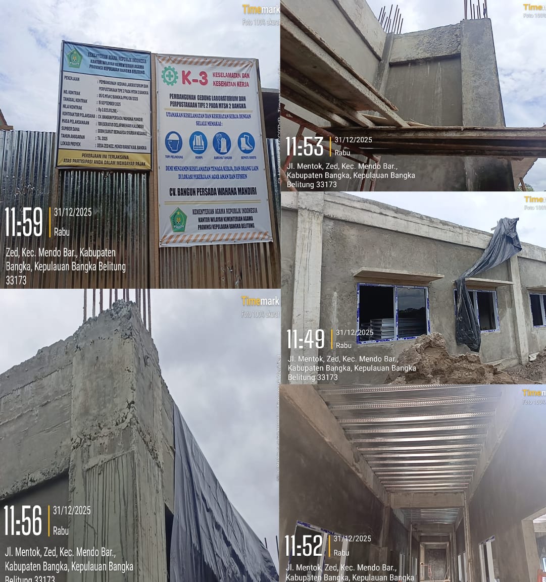 Bangka, kabarxxi.com – Keterlambatan penyelesaian proyek pemerintah kembali menjadi sorotan publik. Kali ini, pekerjaan Pembangunan Gedung Laboratorium dan Perpustakaan Tipe 2 di MTSN 2 Bangka, yang berada di bawah naungan Kantor Wilayah Kementerian Agama Provinsi Kepulauan Bangka Belitung, diduga telah melewati masa pelaksanaan kontrak tanpa penyelesaian pekerjaan secara penuh. Sabtu 3 Januari 2026.
