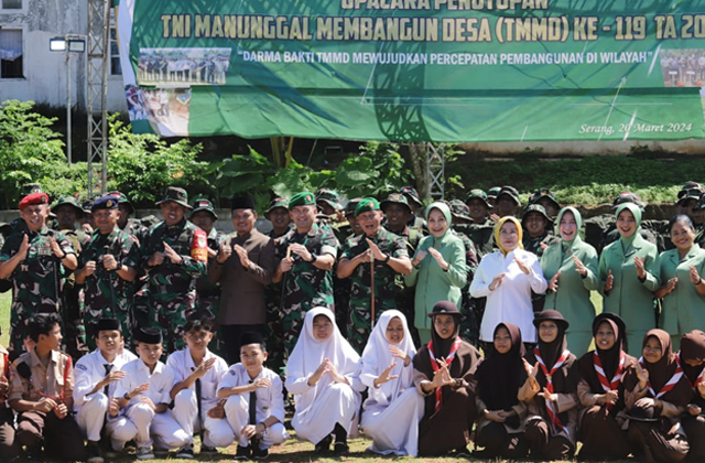 Untuk tingkat Provinsi Banten, penutupan TMMD dilaksanakan di Ponpes Modern Shohibul Muslimin, Kecamatan Tunjungteja, Kabupaten Serang, Rabu, 20 Maret 2024.