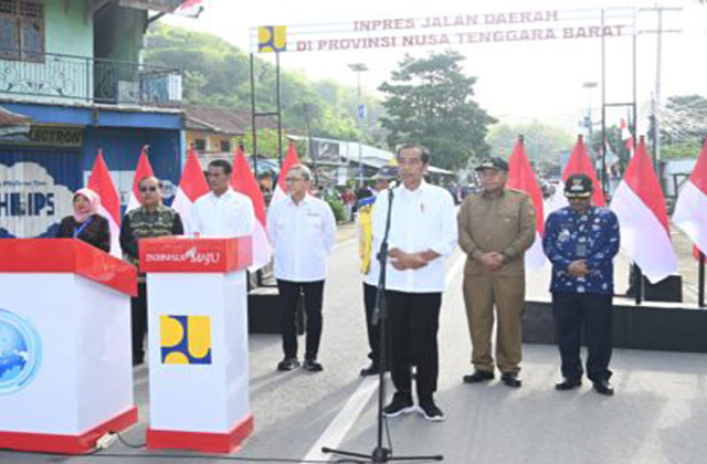Presiden Jokowi mengatakan, pemerintah telah melakukan pembangunan dan perbaikan jalan di NTB pada tahun 2023 sebanyak lima ruas jalan yang tersebar di empat kabupaten, yaitu Lombok Barat, Sumbawa Barat, Sumbawa, dan Bima.
