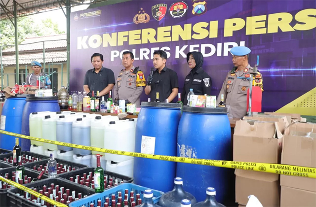 KEDIRI, KabarXXI.Com – Pihak Kepolisian di Kabupaten Kediri, Jawa Timur (Jatim), Kediri berhasil mengungkap kasus produksi dan peredaran minuman keras (Miras) oplosan ilegal yang beroperasi tanpa izin resmi.