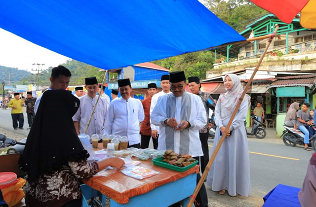 Sebelum ke Masjid, Bupati Pasaman membeli makanan untuk berbuka puasa.