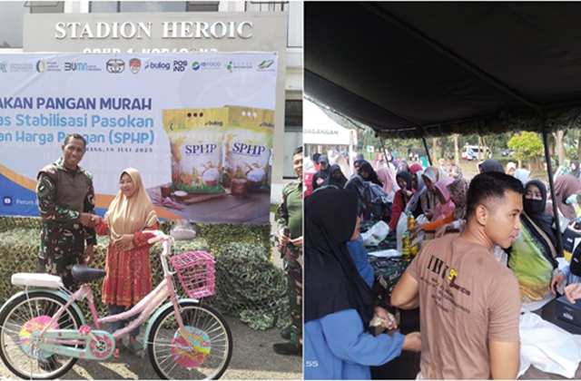 SERANG, KabarXXI.Com – Grup 1 Kopassus menggelar bazar sembako murah, di halaman Stadion Heroik Grup 1 Kopassus, pada Jumat, 18 Juli 2025.
