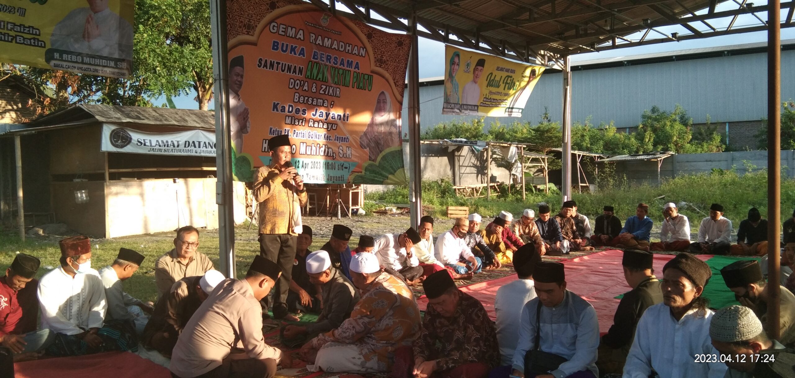TANGERANG, KabarXXI.Com – Ketua PK Partai Golkar Kecamatan Jayanti H. Rebo Muhidin bersama Kepala Desa (Kades) Jayanti, Misri Rahayu menggelar kegiatan buka puasa bersama (Bukber) dan santunan anak yatim piatu, di Kampung Tematik, Desa Jayanti, Kecamatan Jayanti, Kabupaten Tangerang, Banten, Rabu, 12 April 2023.