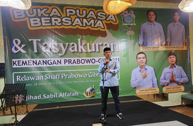 “Kami dari Shaf Prabowo-Gibran 1930 melaksanakan acara Buka Puasa Bersama sekaligus Tasyakuran kemenangan Prabowo-Gibran. Acara ini dilaksanakan sebagai bentuk rasa syukur kami atas kemenangan Prabowo-Gibran. Sebanyak 96.214.691 Rakyat Indonesia memberikan hak suaranya kepada pasangan 02. Artinya masyarakat sangat percaya kepada Prabowo-Gibran,” tuturnya.
