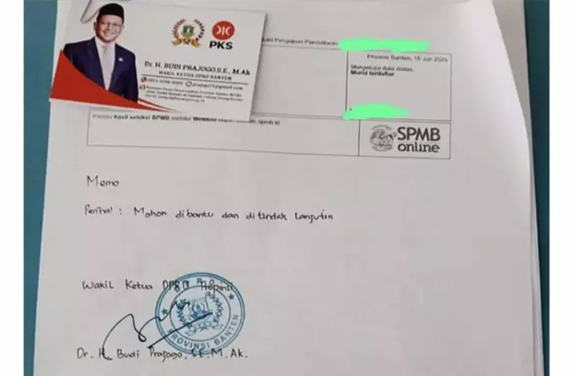 Budi mengatakan, memo tersebut dibuat oleh salah satu staf di DPRD Banten. Ia mengaku diminta untuk tandatangan oleh staf dengan alasan membantu siswa kurang mampu pada SPMB 2025/2026.