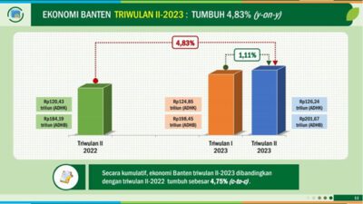 SERANG, KabarXXI.Com – Badan Statistik Provinsi (BPS) Provinsi Banten mencatat, Perekonomian di Provinsi Banten berdasarkan besaran Produk Domestik Regional Bruto (PDRB) atas dasar harga berlaku Triwulan II-2023 mencapai Rp201,67 triliun…