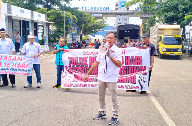 BANYUWANGI, KabarXXI.Com – Asosiasi Sopir Logistik Indonesia (ASLI) dan Asosiasi Pengusaha Truk Indonesia (Aptrindo) melakukan aksi demo di depan pintu masuk Pelabuhan Tanjungwangi, Banyuwangi, Jawa Timur (Jatim), menolak durasi pembatasan angkutan barang selama arus mudik dan balik Lebaran 2025 yang terlalu lama.