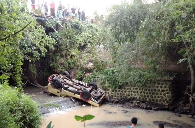 Sementara itu, kendaraan truk berwarna kuning tersebut mengalami kerusakan yang cukup parah. Kondisi kendaraan terbalik di bawah jembatan sedalam 10 meter. (*/red)