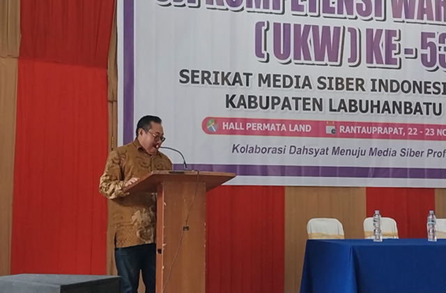 RANTAUPRAPAT, KabarXXI.Com – Uji Kompetensi Wartawan (UKW) Angkatan 53 atas kerja sama Serikat Media Siber Indonesia (SMSI) dan LUKW Universitas Prof Dr Moestopo (UPDM) Jakarta, resmi digelar di Permata Hall, Rantauprapat, Kabupaten Labuhanbatu, Jumat-Sabtu (22-23/11).