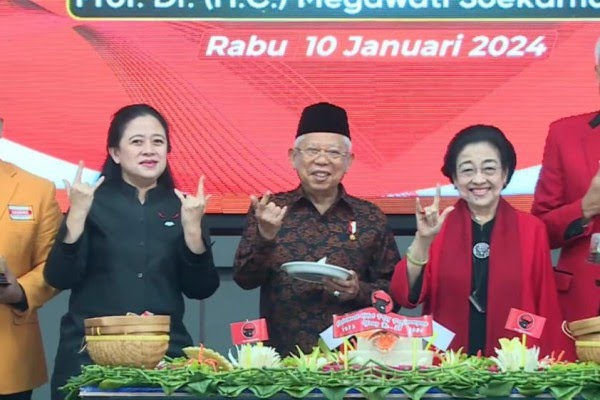 “Sebagai partai besar, PDI Perjuangan banyak mewarnai proses pembangunan dengan tetap menjaga ideologi nasionalis yang kokoh,” ucap Ma’ruf.