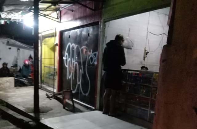 Warung tersebut tampak tutup sebagian, namun banyak didatangi anak remaja, lalau kios tersebut kembali buka.