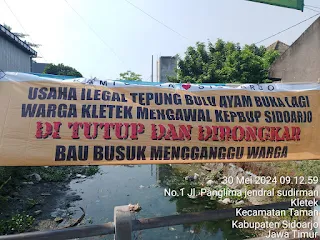 Solihan (65), warga Kletek, mengungkapkan bahwa warga telah menghindari bau limbah ini sejak tahun 2017. Prosesnya panjang, melalui DLHK, Polresta, perijinan, hearing ke Komisi C, dan terakhir pada tahun 2021 eks Bupati Sidoarjo, Gus Muhdlor, mengadakan rapat di Balai Desa dan memutuskan untuk menutup perusahaan pada 4 November 2021. Kini, warga menuntut agar keputusan tersebut diimplementasikan kembali.